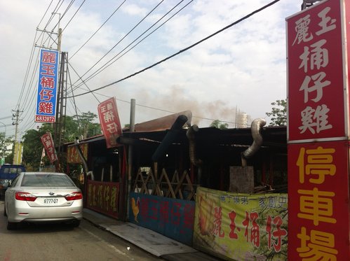 後來才發現,麗玉桶仔雞應該也是有佔到地利之便吧,它就位在國道3號白河交流道下、準備要左轉往關仔嶺山路的十字路口的右手邊,招牌很顯眼。